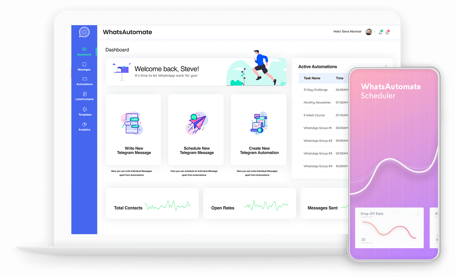 We create WhatsAutomate to schedule & auto-send Telegram messages so you can have more time building your brand, while running your communications or online course on auto-pilot.